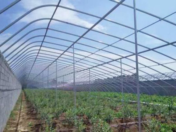 采用25*1.5mm热镀锌钢管,经模具人工弯曲成型,斜撑固定在大棚两端,以增加棚体强度。